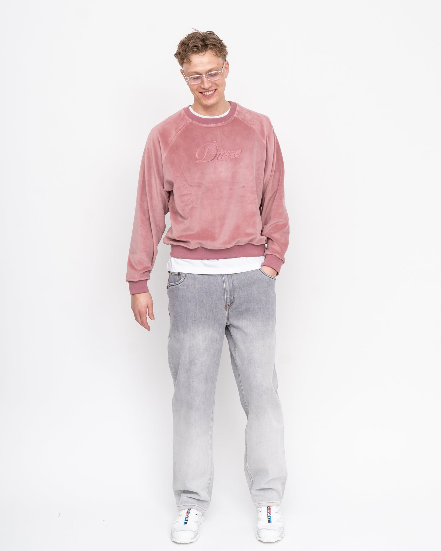 Cursive Velvet Crewneck Pink